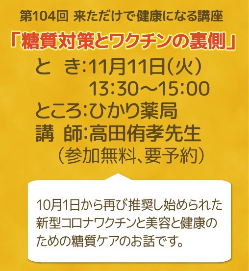🌿 第104回 来ただけで健康になる講座〜糖質対策とワクチンの裏側 のご案内