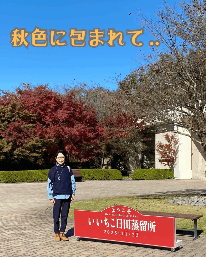 青空が広がる気持ちの良い休日に、紅葉を求めて大分県日田市の「いいちこ日田蒸留所」へ出かけてきました。