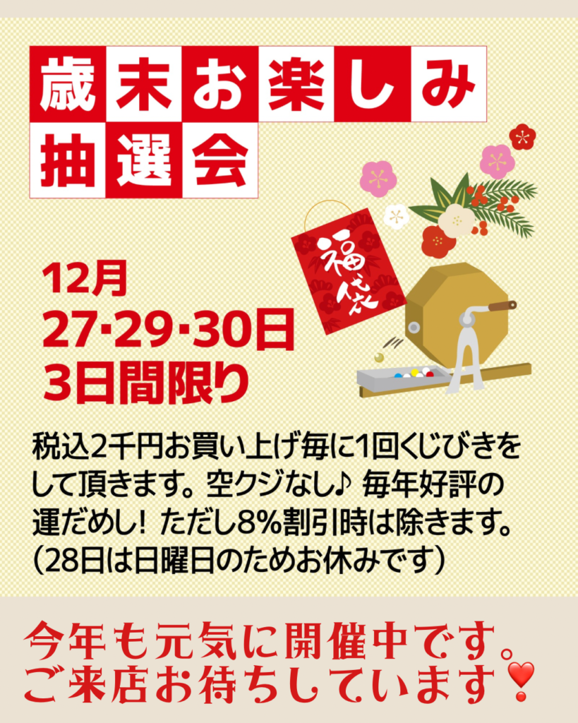 歳末お楽しみ抽選会を開催しています【12月27・29・30日】